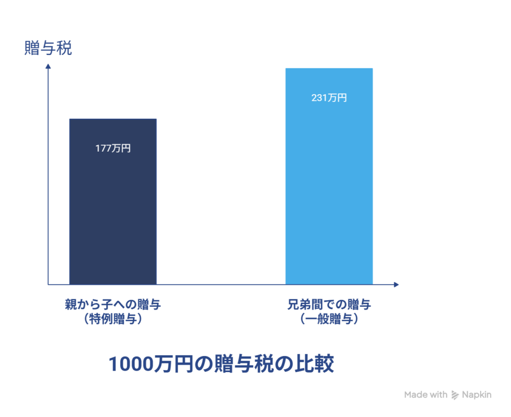 贈与税の負担は贈与者と受贈者の関係によって大きく変わります。同じ1000万円の贈与でも、親子間と兄弟間では50万円以上の差が生じます。生前贈与を計画する際は、基礎控除の活用や複数年にわたる贈与の検討など、税理士などの専門家に相談しながら進めることをお勧めします。適切な方法で計画的に贈与を行うことで、将来の相続税負担を軽減できる可能性があります。