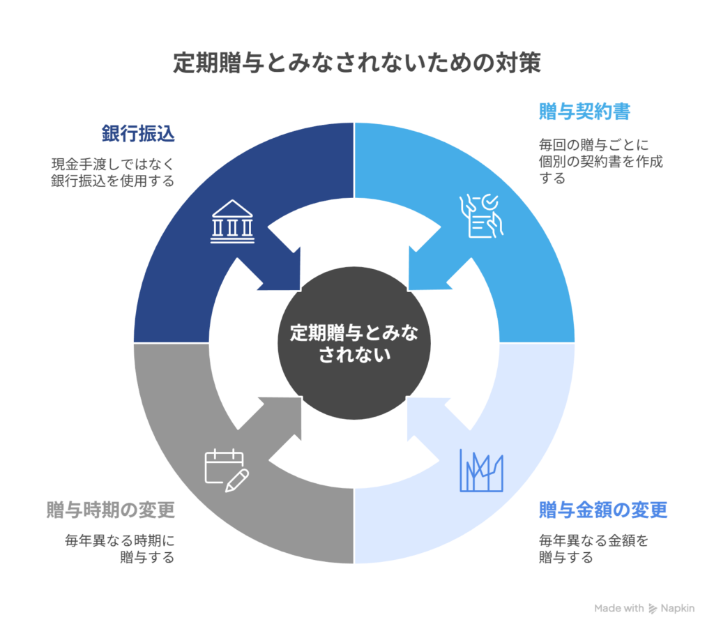 税務署から定期贈与と指摘されないためには、以下の対策が有効です。