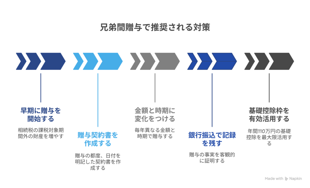 兄弟間で毎年110万円ずつの贈与を行う場合、以下の2点に特に注意が必要です。