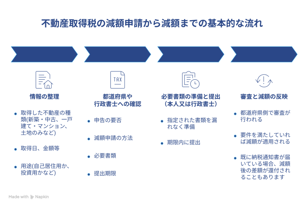 減額を受けるための手続きは、概ね以下のような流れになります。