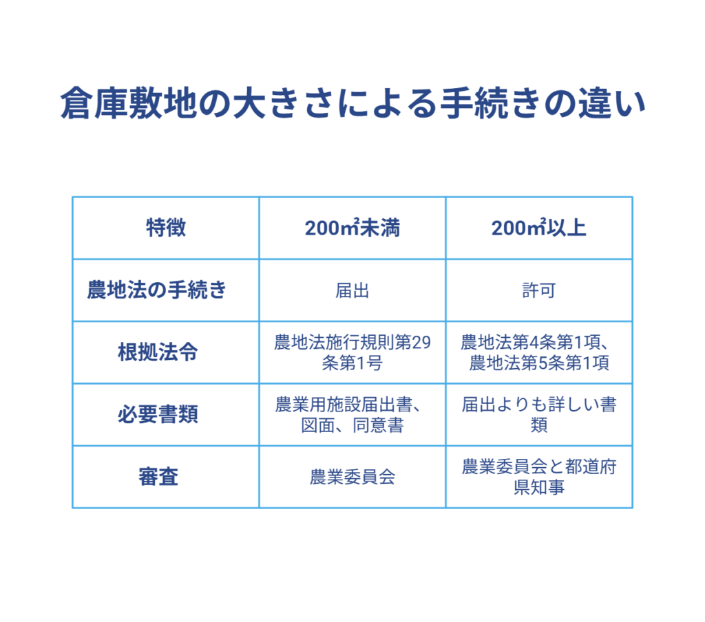 2.倉庫敷地の大きさで変わる手続き